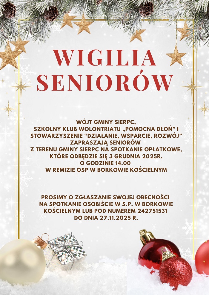 Zapraszamy na spotkanie Wigilijne Seniorów z terenu Gminy Sierpc